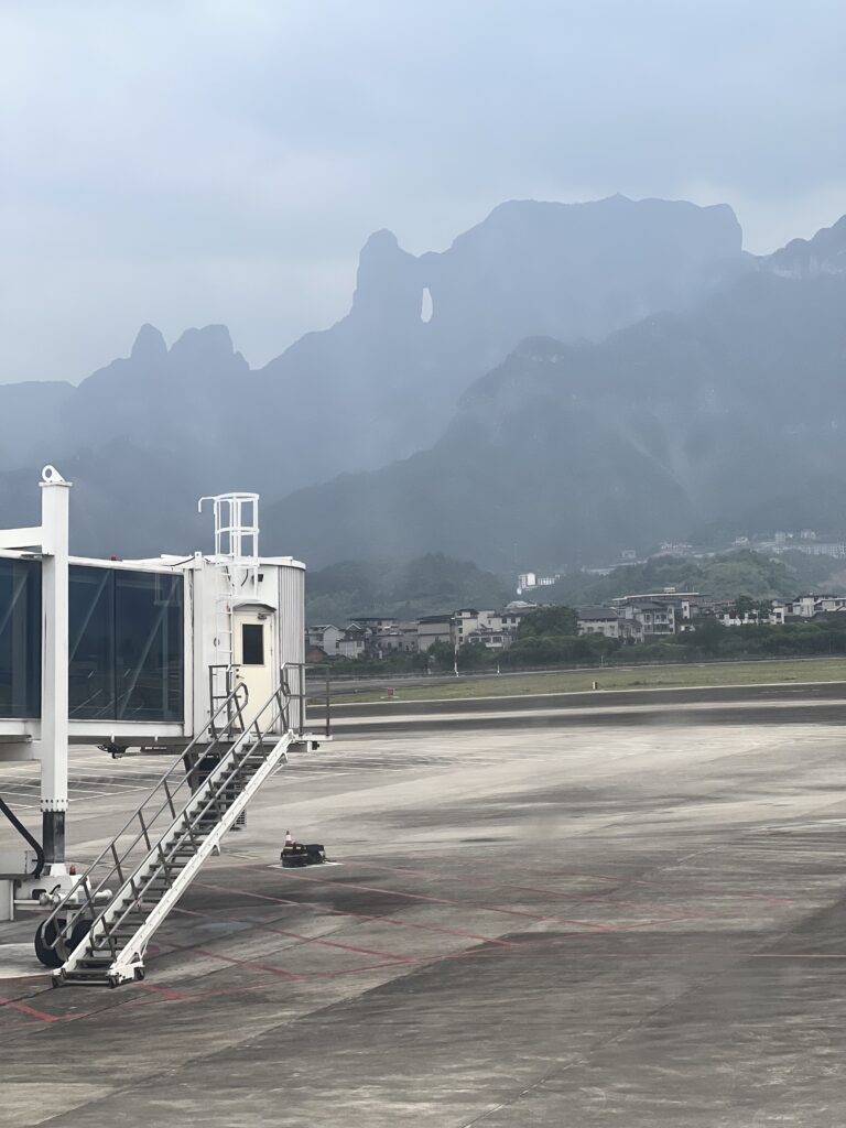 搭乗口へ向かう途中、滑走路の向こうに天門洞が!